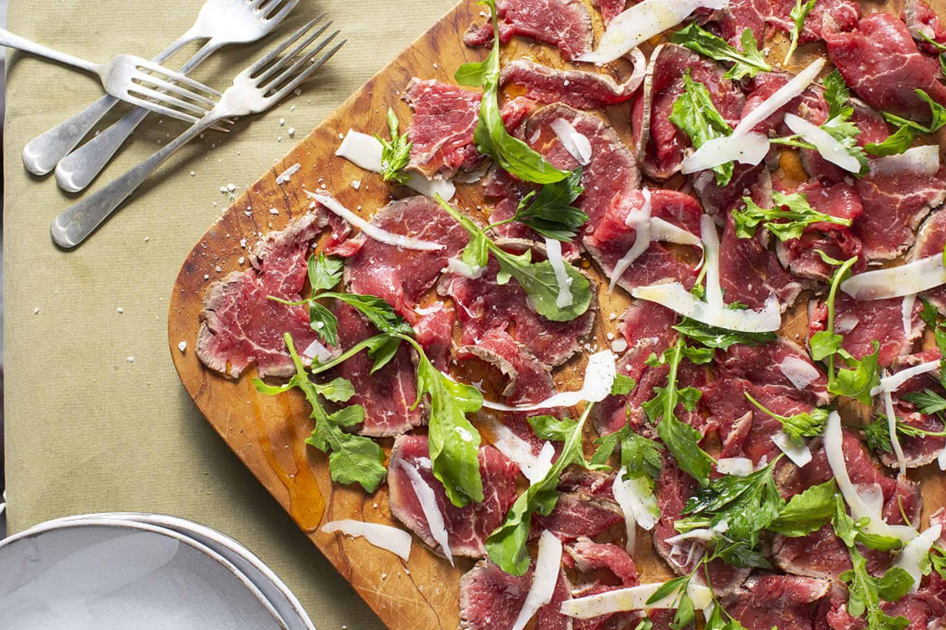Geordie: Can’t wait to try your beef carpaccio recipe Al, but you haven’t lived until you’ve eaten Frances’ roast lamb with mustard, rosemary, thyme, anchovies, lemon zest and garlic on top.